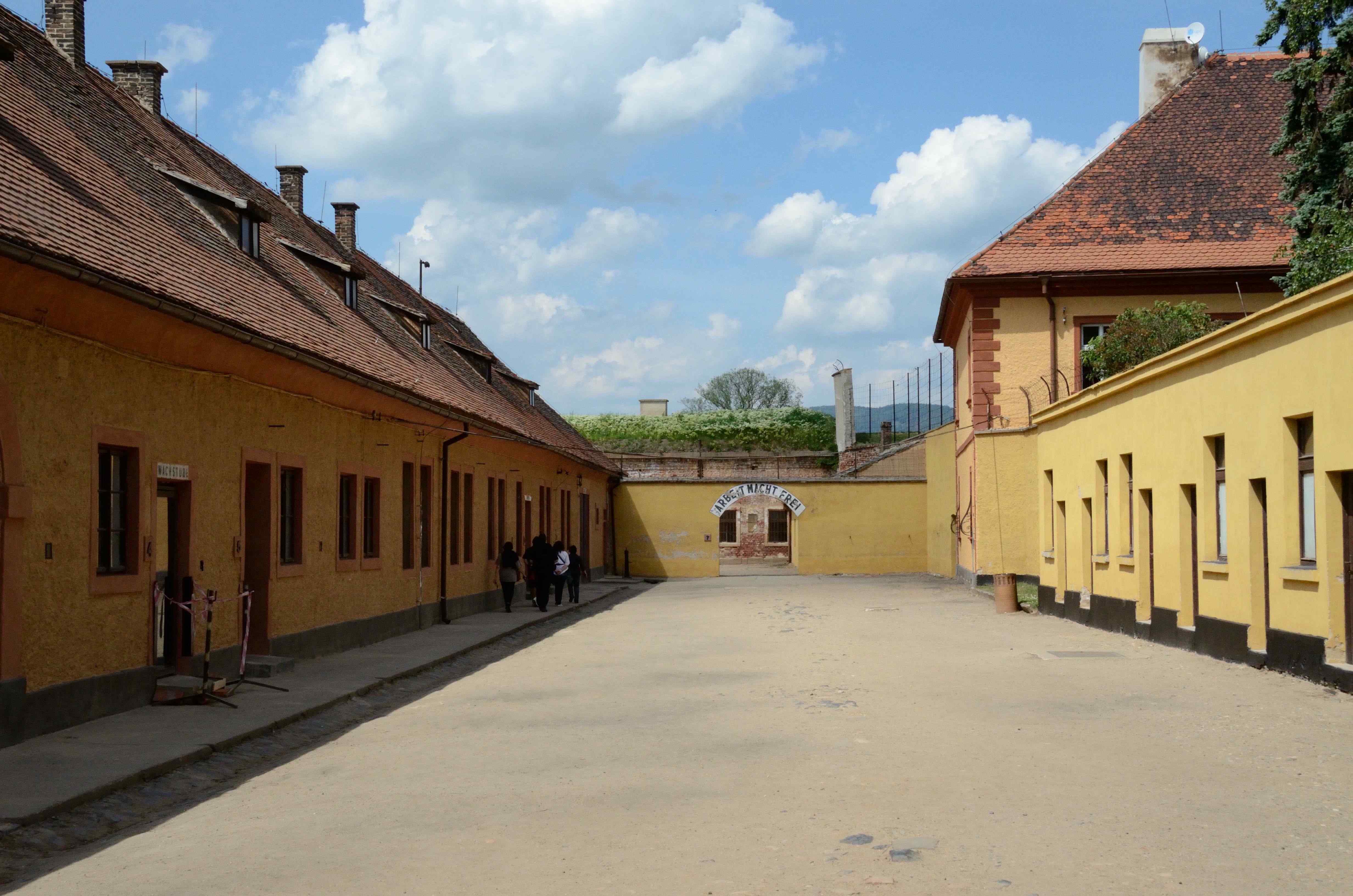 The sign reading “Arbeit Macht Frei” reminds of the connection between the concentration camp on Theresienstadt and the extermination camp in Auschwitz-Birkenau where many of the former prisoners from Theresienstadt were murdered.